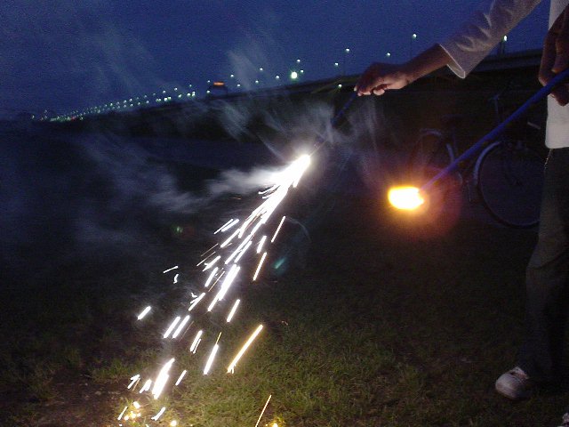 花火を持っているのが誰なのか、私にもわかりません(笑) というか、外まだ明るいですね〜(笑)
